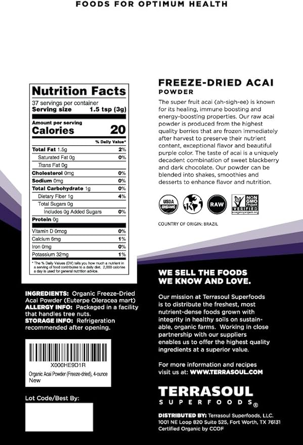 - Terrasoul Superfoods Acai Berry powder, 8-ounces (2 - 4 oz Packages)