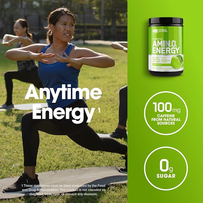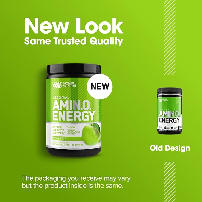 Optimum Nutrition Amino Energy - Pre Workout with Green Tea, BCAA, Amino Acids, Keto Friendly, Green Coffee Extract, Energy Powder - Green Apple, 30 Servings (Packaging May Vary)