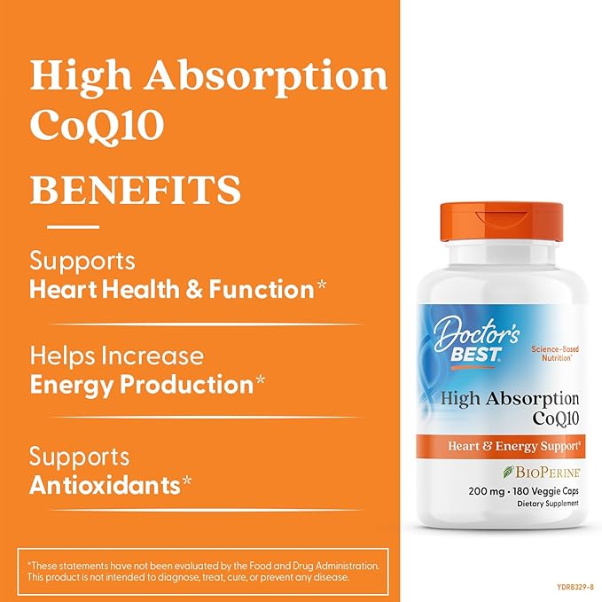 - DOCTOR’S BEST HIGH ABSORPTION COQ10: Easy-to-absorb form of a key nutrient that powers and protects heart vitality, cardiovascular health and cellular energy*. CoQ10 also supplies antioxidant support to the heart, where it is naturally concentrated.