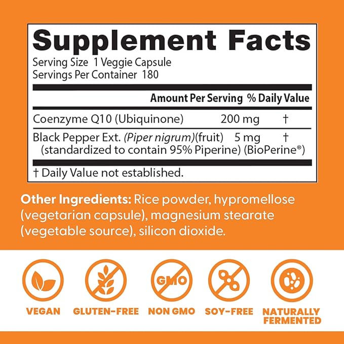 Doctor's Best High Absorption CoQ10, Heart & Energy Support, USP Verified, Naturally Fermented CoQ10, Non-GMO Gluten Free, Soy Free, Vegan 180 Veggie Caps