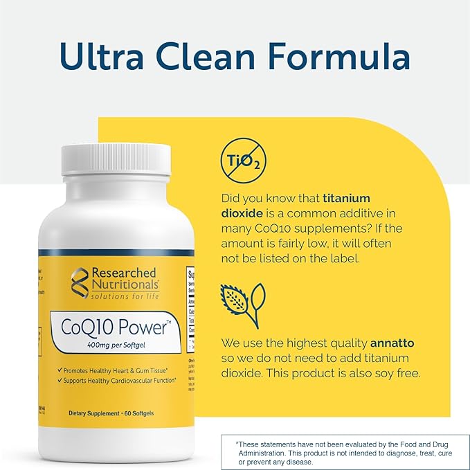 Researched Nutritionals CoQ10 400mg Softgels - CoQ10 Power - Therapeutic-Strength Coenzyme Q10 Supplement - Support Natural Energy & Immune Function, Promote Healthy Heart & Gum Tissue (60 Softgels)