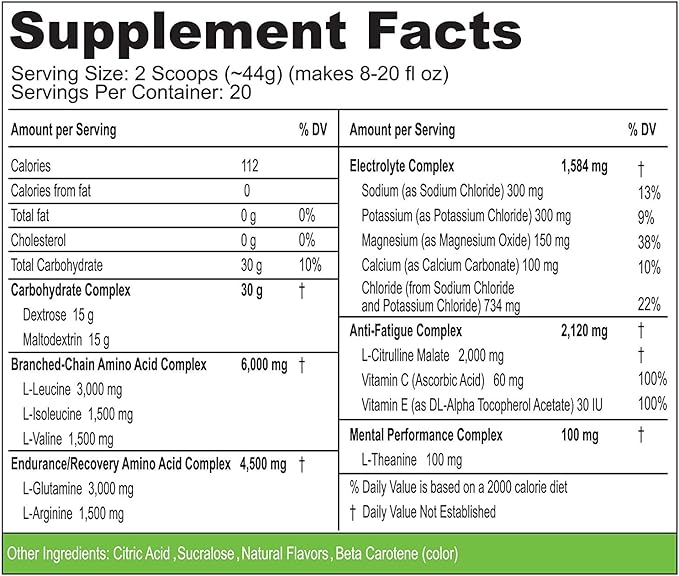 - KEEP GOING STRONG. TriFuel's anti-fatigue complex contains 2,000 mg of L-citrulline malate plus Vitamins C and E to delay the onset of fatigue during intense training, reduce soreness and hasten recovery.