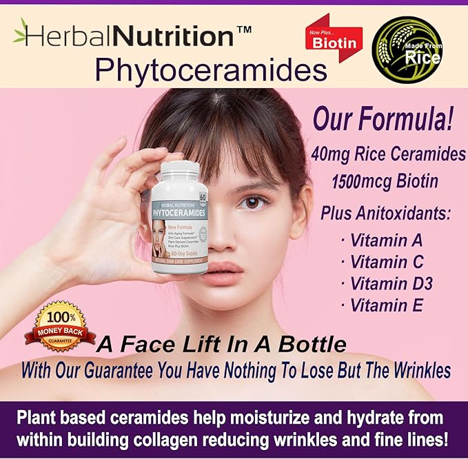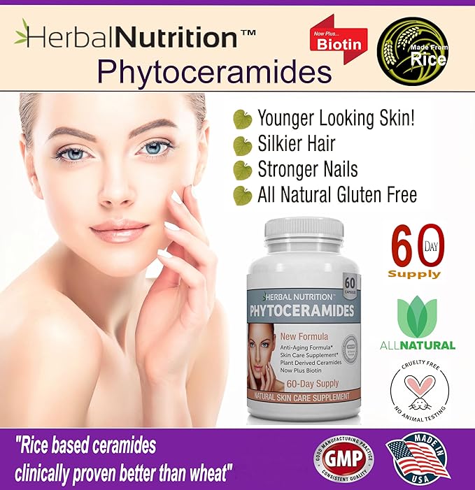 - Herbal Nutrition Phytoceramide with Biotin! Biotin adds even more benefits for stronger, more beautiful hair and nails. Our Phytoceramides are rice based, gluten free, fortified with vitamins A, C, D and E to help maximize results. Herbal Nutrition Phytoceramides are made in the USA by a GMP certified manufacturer using all natural ingredients.