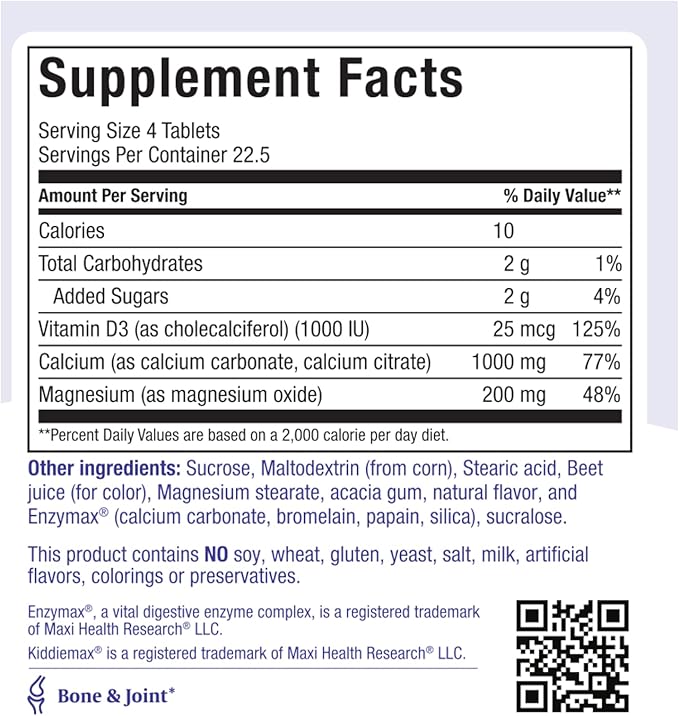 Maxi Health KiddieMax Calcium - CalciYum! - Flavored -Animal Shaped Chewies - Kosher (90 Count)