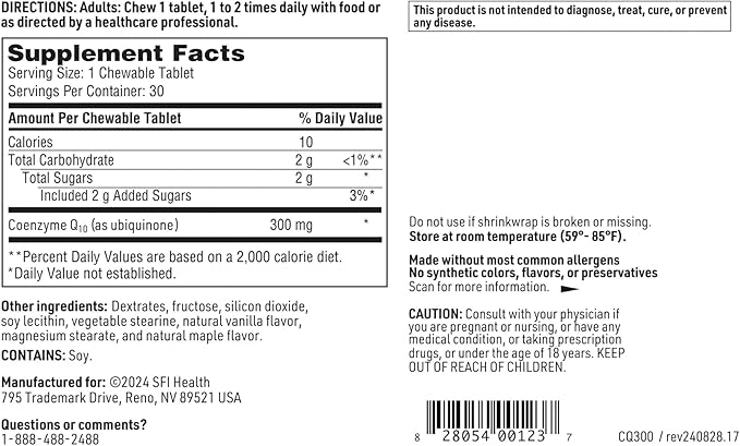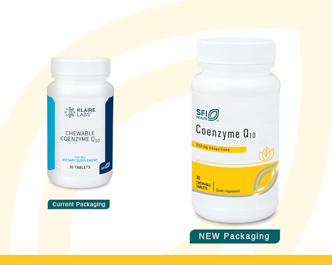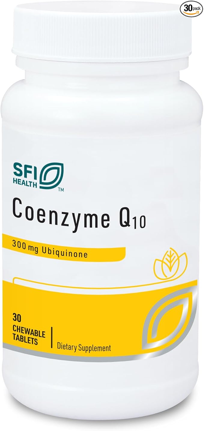 Klaire Labs SFI Health Chewable Coenzyme Q10-300 Milligrams High Strength CoQ10 as Ubiquinone, Emulsified with Vitamin E for Superior Absorption (30 Tablets)