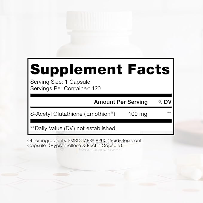 - πππππππ πππππππππππ by health practitioners worldwide. This EXTRA STRENGTH Formula Contains 100mg of S-Acetyl-Glutathione PER CAPSULE. This 120 capsule bottle is a 2 to 4 month supply. Use of EMBOCAPS AP60 Acid Protection capsules offers a guaranteed 60 minute delayed-release and contains ZERO Fillers! Manufactured in the USA in a NSF; GMP-certified facility, for guaranteed quality and potency.