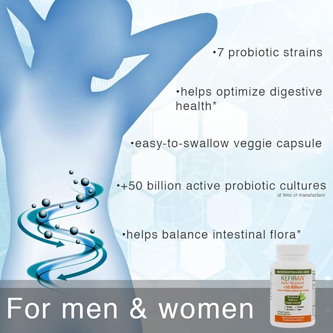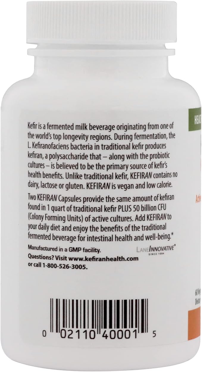 - THE BEST OF KEFIR IN A CAPSULE: KEFIRAN offers the best of the traditional kefir drink, but in an easy-to-swallow veggie capsule. KEFIRAN gives you 20mg of kefiran, the kefir polysaccharide PLUS 50 billion active probiotic cultures in a daily serving of just two capsules.