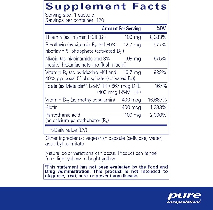 Pure Encapsulations B-Complex Plus - B Vitamins Supplement to Support Neurological Health, Cardiovascular Health, Energy Levels & Nervous System Support* - with Vitamin B12 & More - 120 Capsules
