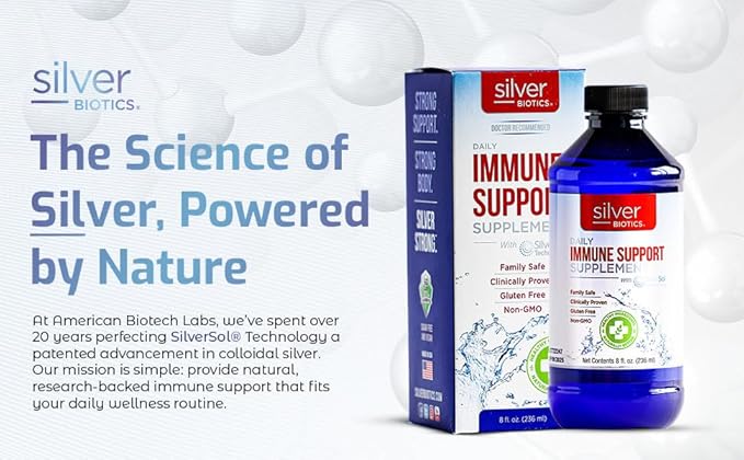 Silver Biotics Patented Multivalent SilverSol Technology | Ag₄O₄ 10 PPM Immune Support | Bio-Hacking Immune Building Natural Support | 8 Fl Oz