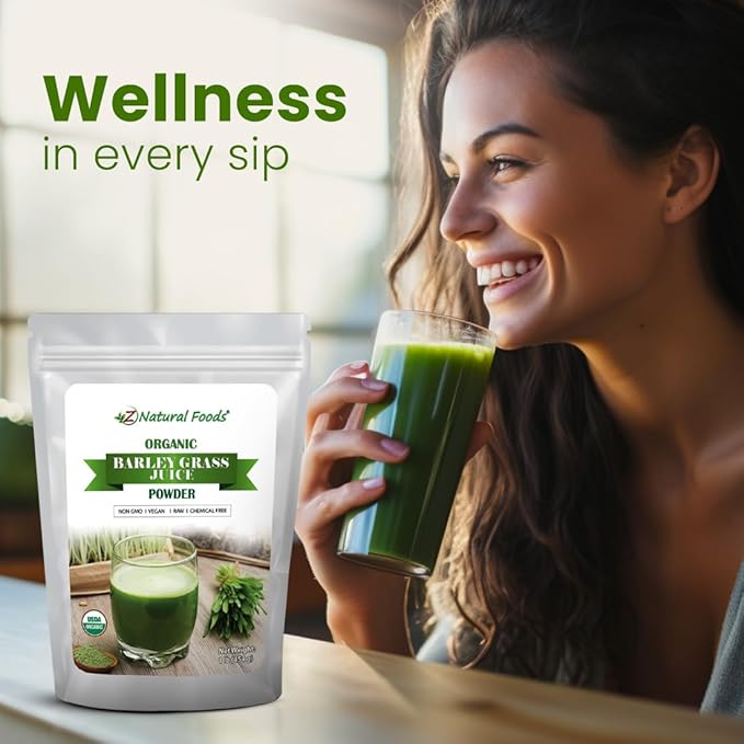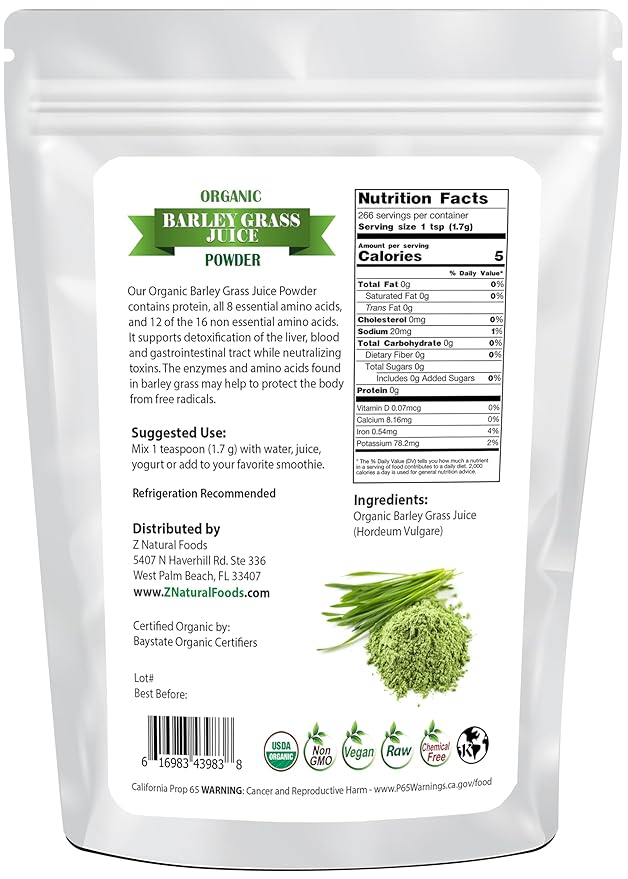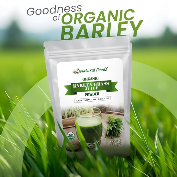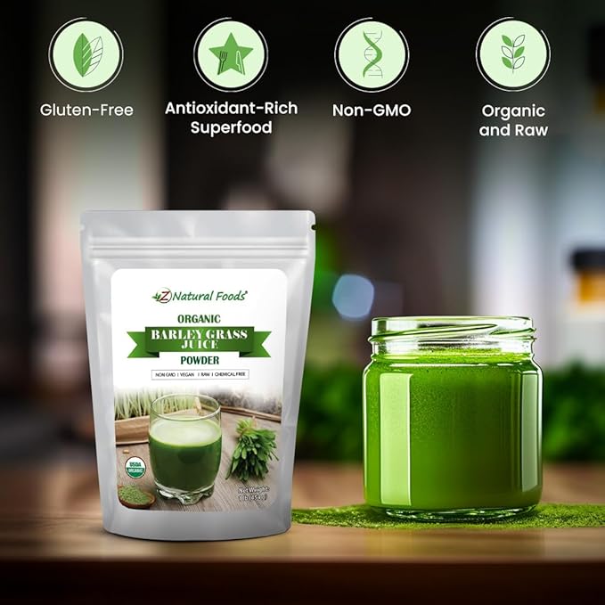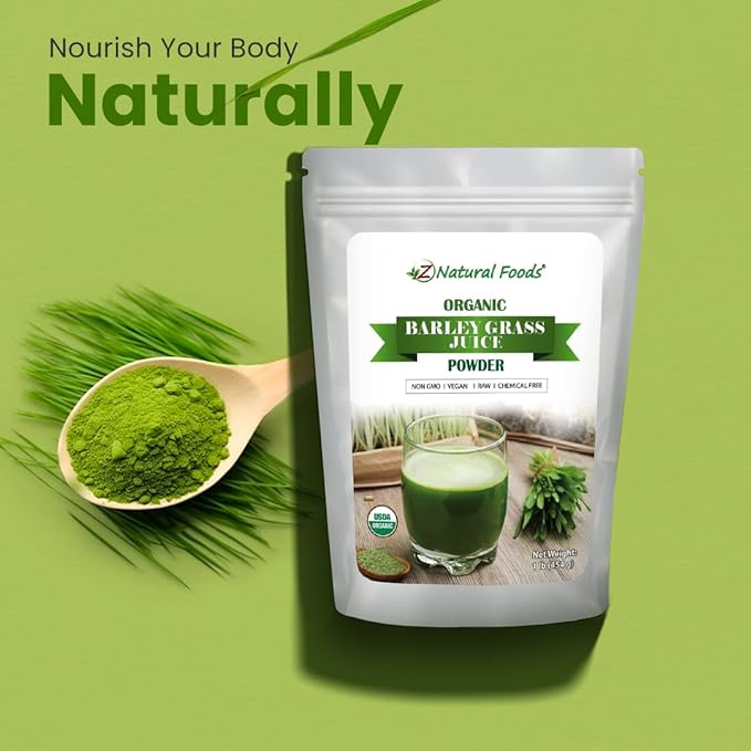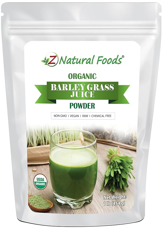 Z Natural Foods Organic Barley Grass Juice Powder - Made in USA, USDA Organic Nutrient-Dense Green Drink Mix for Energy, Detox with Amino Acids - Antioxidant Juice Blend for Water, Smoothies, 1 lb