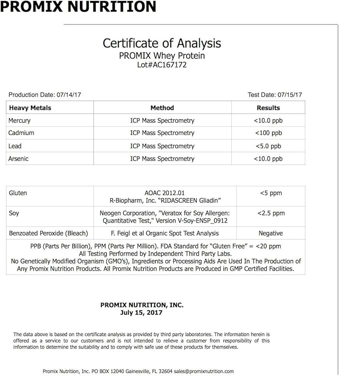 - Seriously Clean: Whey Protein Powder is made without casein. All Promix products are free of gluten, soy, GMOs, hormones, antibiotics, refined sugar, artificial sweeteners, stevia, gums, fillers, and bleach. 94% of ingredients sourced from North America. Partner of 1% for the Planet. Produced in facilities using GMP (Good Manufacturing Practice) standards.