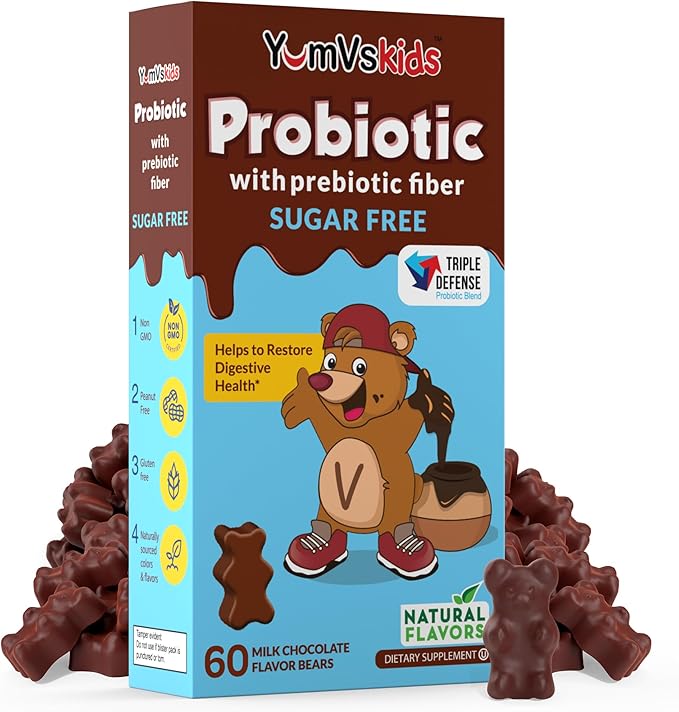 YumVs Probiotics for Kids with Prebiotic Fiber Sugar Free Chocolate Chewable Supplements - Dietary Supplement Chewables for Digestive Health - Toddlers, Kids & Teens 60 Count