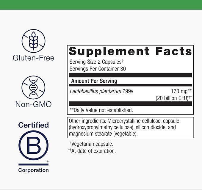 - Intestinal Health: Lactobacillus plantarum 299v probiotic supports a healthy intestinal environment*