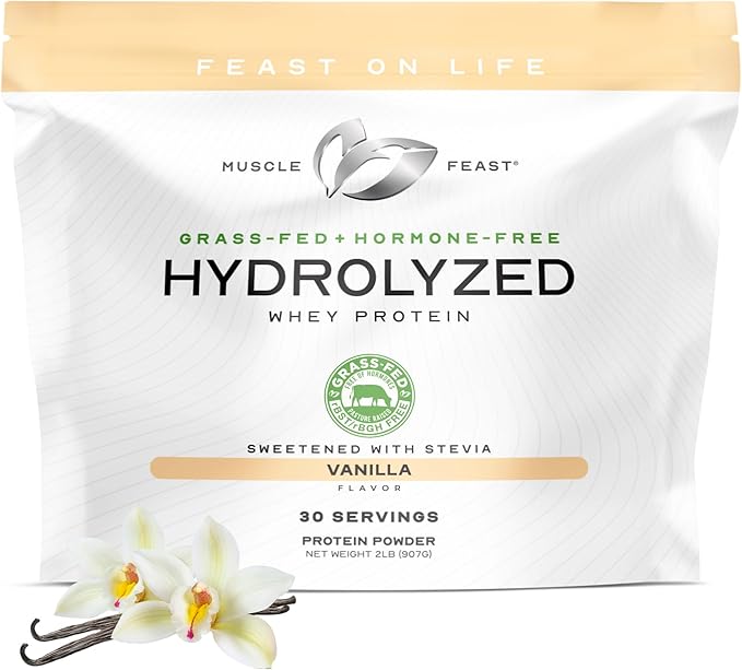 Muscle Feast Hydrolyzed Whey Protein Powder, Grass Fed and All Natural Hormone-Free, Hydro Whey Powder for Men and Women, Gluten Free, Non-GMO, Delicious Hydrolyzed Protein Powder, Vanilla, 2lb