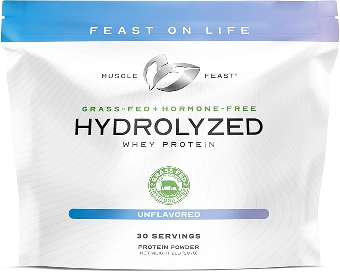 Muscle Feast Hydrolyzed Whey Protein Powder, Grass Fed and All Natural Hormone-Free, Hydro Whey Powder for Men and Women, Gluten Free, Non-GMO, Delicious Hydrolyzed Protein Powder, Unflavored, 2lb