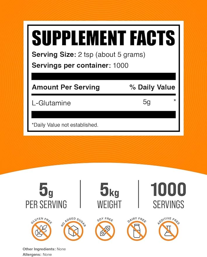 - Optimized in every Serving: Our L-Glutamine powder, in glutamine 5g, is unflavored and free of unnecessary allergens, offering you a high-quality product that easily integrates with other supplements or your preferred shake or beverage.