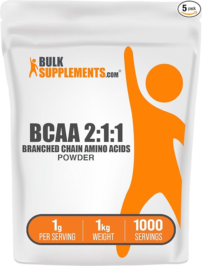 BulkSupplements.com BCAA 2:1:1 Powder - Branched Chain Amino Acids, BCAAs Amino Acids Powder - Unflavored & Gluten Free, 1g per Serving, 1kg (Pack of 5) (11 lbs)