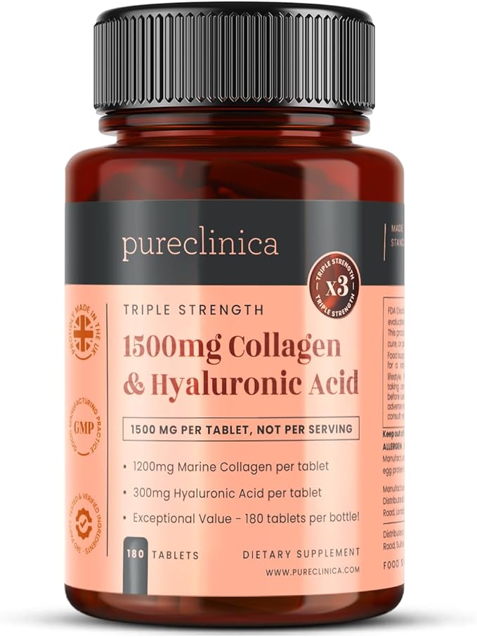 pureclinica 1500mg UltraColl Collagen (1200mg) and Hyaluronic Acid (300mg) x 180 Tablets - 6 Months Supply
