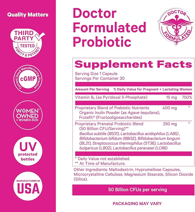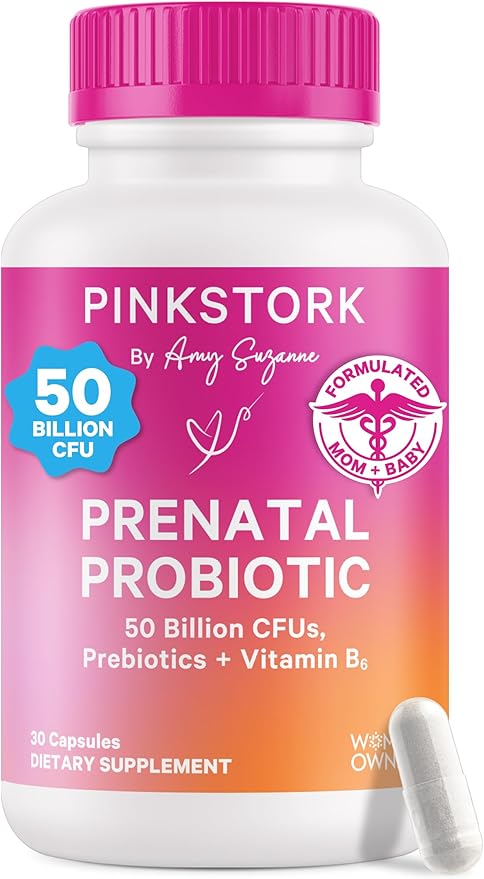 Pink Stork Prenatal Probiotics for Women - 50 Billion CFU, Vitamin B6, Prebiotics, Morning Sickness, Gut Microbiome, Pregnancy Probiotic, Immune Support, Pregnancy Must Haves - 30 Capsules
