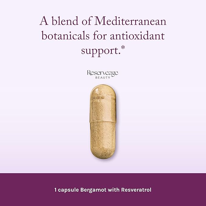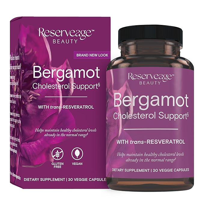 Reserveage Beauty, Bergamot Cholesterol Support with Resveratrol, Antioxidant Supplement for Cardiovascular Support & Heart Health, Vegan, 30 Capsules (30 Servings)