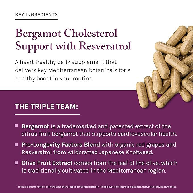 - Resveratrol Supplement for Men & Women: Heart supplement is made with a patented bergamot extract that aids in maintaining natural cholesterol, triglyceride and lipid levels already in a healthy range