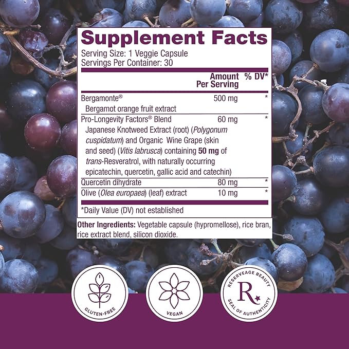 - Bergamot Supplement for Men & Women: Our pro-longevity blend includes natural ingredients rich in antioxidants like wildcrafted Japanese knotweed and organic French & Muscadine red wine grapes