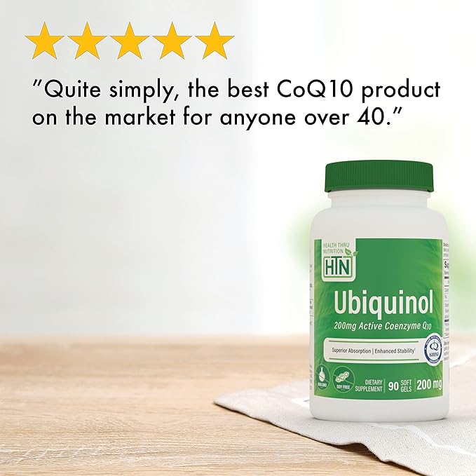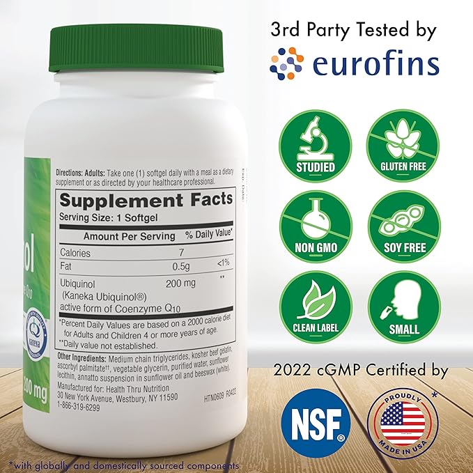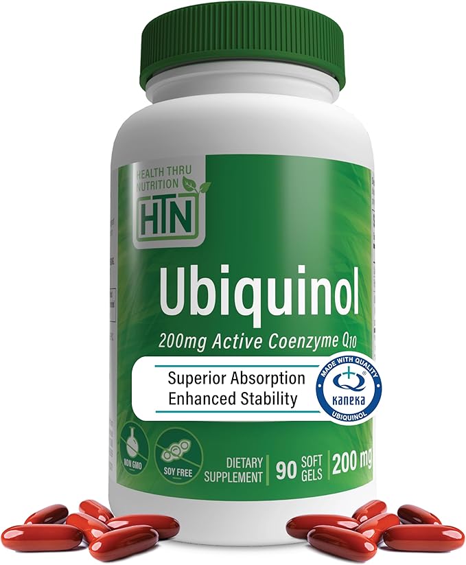 Health Thru Nutrition Ubiquinol 200mg 90 Softgels as Kaneka QH Reduced CoQ-10 | Stabilized - 3rd Party Tested | Enhanced Bioavailability | Cardiovascular & Mitochondria Function Support | Non-GMO