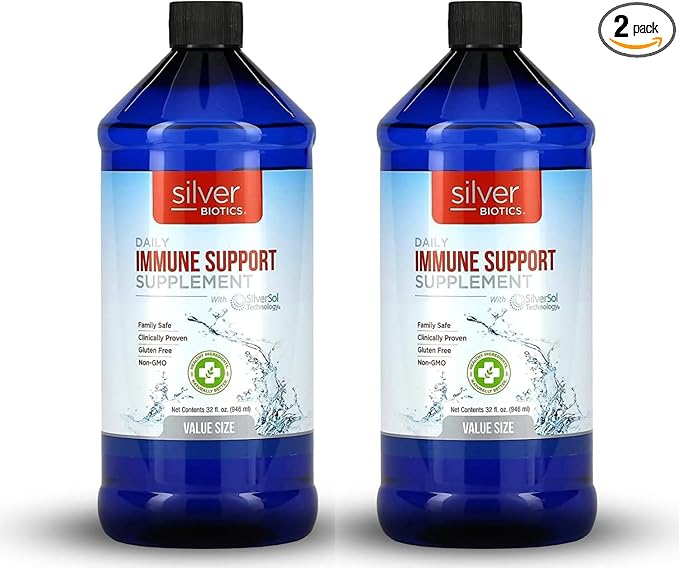 Silver Biotics Colloidal Nano SilverSol Ag₄O₄ 10 PPM Immune Support | Bio-Hacking Immune Building Natural Support | 32 Fl Oz (Pack of 2)