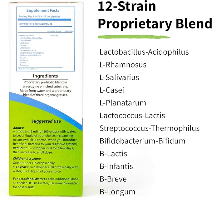Daily Liquid Probiotics, USDA-Certified Organic Probiotics, Allergen- and Gluten-Free Vegan Probiotic for Women and Men, Non-GMO and Raw, 4 Fl Oz (Pack of 1)