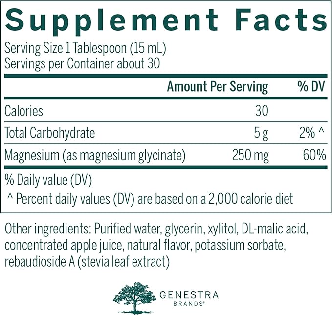 Genestra Brands Magnesium Glycinate Liquid | Supports Normal Muscle Function and Helps Metabolize Carbs and Proteins | 15.2 Fl Oz | Apple Pomegranate Flavor