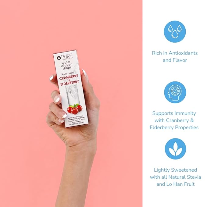 Pure Inventions - Cranberry & Elderberry Water Infusion Drops - Antioxidants & Electrolytes - Health & Wellness Drink -Immunity Support -Sugar Free, Zero Calorie, No Artificial Sweeteners -60 Servings