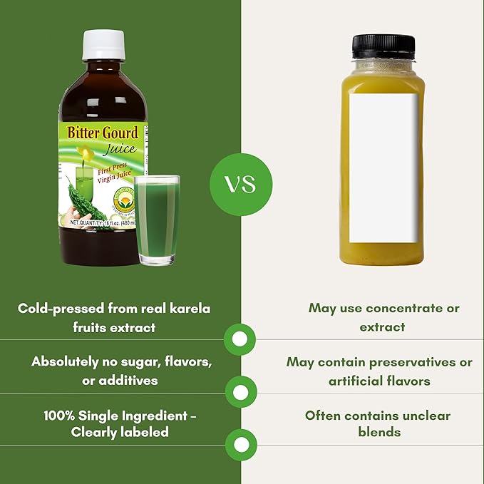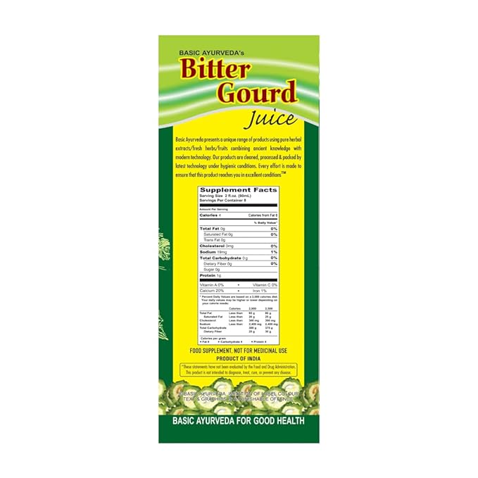 - Pure and Natural: Our Basic Ayurveda Bitter Gourd Juice is made from fresh bitter gourd, handpicked and carefully processed to retain its natural properties and health benefits.