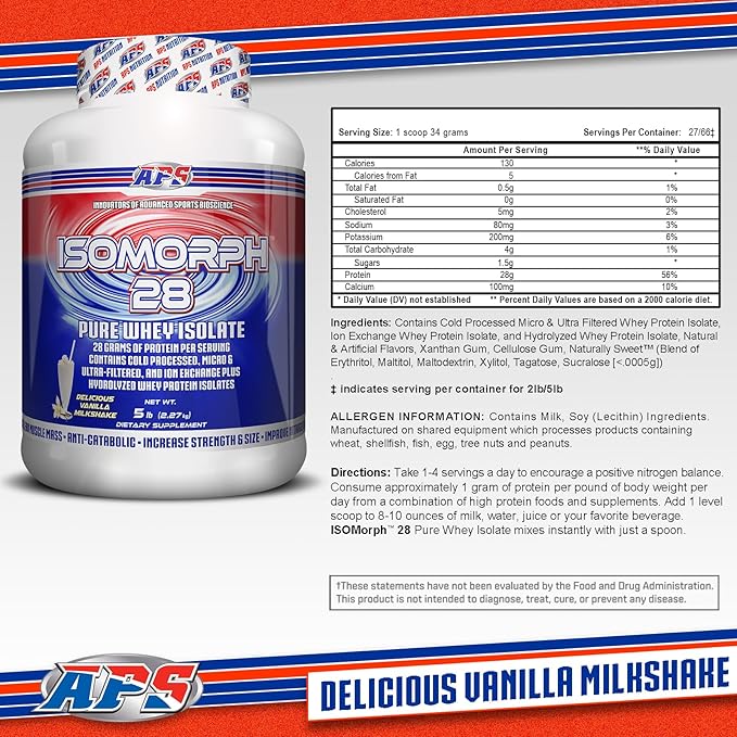 APS Nutrition Isomorph 28 Protein Powder | Pure Whey Isolate | Cold Pressed, Ultra- Filtered, & Ion Exchange Isolates | 28g Protein | 5 Pound (Vanilla Milkshake)