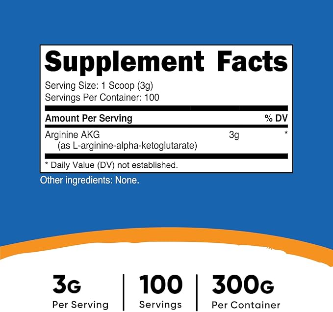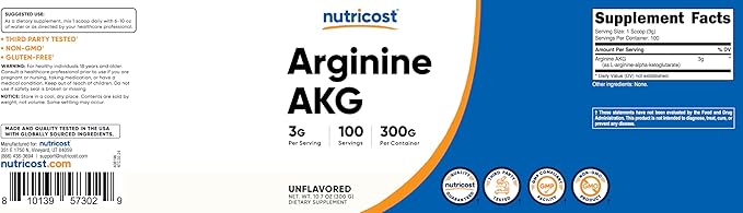 Nutricost Arginine AKG Powder 300 Grams (AAKG) - 3G Per Serving & 100 Servings - Pure Arginine Alpha Ketoglutarate