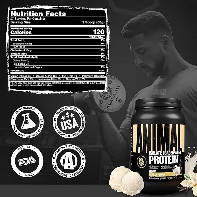 - LOADED WITH WHEY PROTEIN ISOLATE: Animal Whey protein powder is made up of the highest quality protein sources, and that starts with the first source being whey protein isolate; Fast absorbing and very bio-available, it is widely regarded as the highest quality source of protein