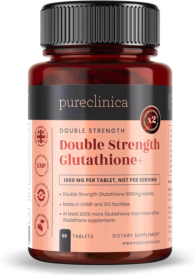 pureclinica Glutathione 1000mg x 60 Tablets. with 500mg Glutathione, 300mg ALA, and 200mg Vitamin C per Tablet.