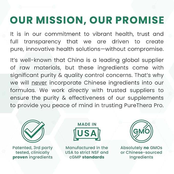 - πππππ πππππππ ππ πππ πππ ππππ πππππππ πππππππππππ: Manufactured in an NSF-certified facility right here in the USA, our third-party tested supplements follows the FDA's strict cGMP guidelines. Purity is our priority, which is why we insist on using patented, clinically studied ingredients, and never utilizing fillers, flow agents, excipients, or ingredients sourced from China. We also never use dairy, gluten, corn, soy, or other common allergens in any of our class-leading, practitioner-recommended formulas.