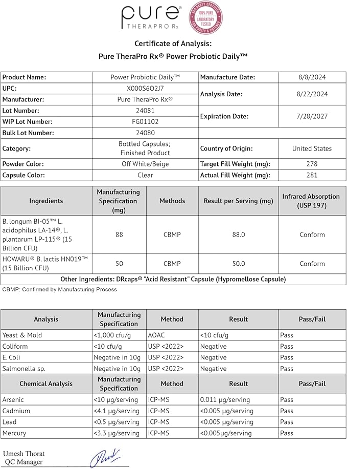 - Special Ingredients : Bifidobacterium longum Bl-05, HOWARU® Bifido (Bifidobacterium lactis HN019), Lactobacillus acidophilus La-14, Lactobacillus plantarum Lp-115 Bifidobacterium longum Bl-05, HOWARU® Bifido (Bifidobacterium lactis HN019), Lactobacillus acidophilus La-14, Lactobacillus plantarum Lp-115