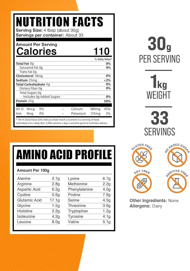 - Maximize your Potential: Enhance your active lifestyle with our Casein Protein powder, in micellar form, designed to support your strength and performance goals. Each serving delivers a substantial 30 grams dose, catering to both fitness enthusiasts looking to push their limits.
