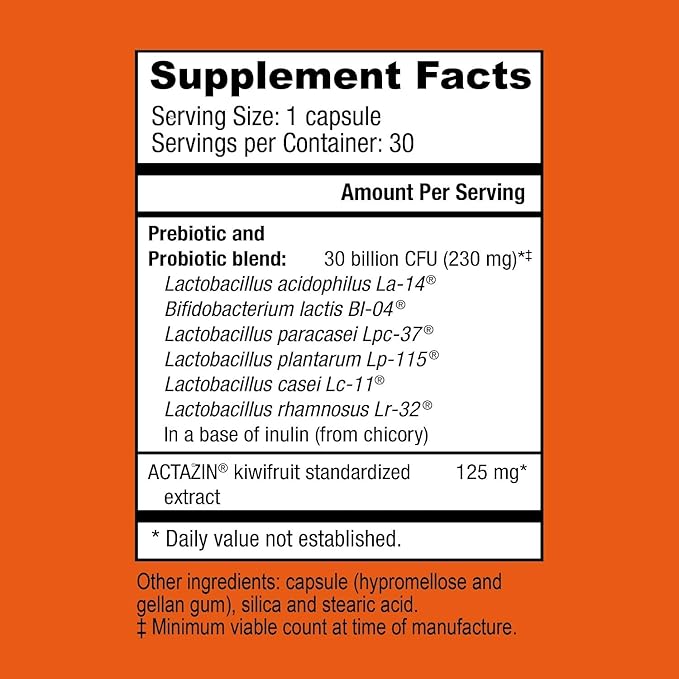 - Product Benefits : 30 billion CFU's from 6 probiotic strains, plus two prebiotics