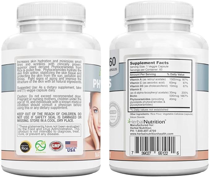 - Herbal Nutrition Phytoceramide with Biotin! Biotin adds even more benefits for stronger, more beautiful hair and nails. Our Phytoceramides are rice based, gluten free, fortified with vitamins A, C, D and E to help maximize results. Herbal Nutrition Phytoceramides are made in the USA by a GMP certified manufacturer using all natural ingredients.
