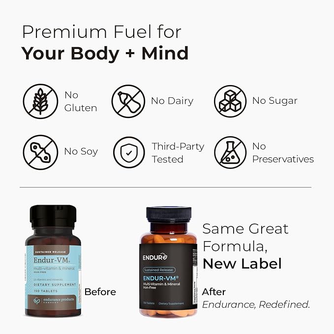 ENDUR-VM - Without Iron – Sustained-Release Daily Multi-Vitamin - Vitamin A, Vitamin C, Vitamin D, Vitamin E, Vitamin B12 - Zinc for Immune Health Support + Calcium & More - 150 Tablets