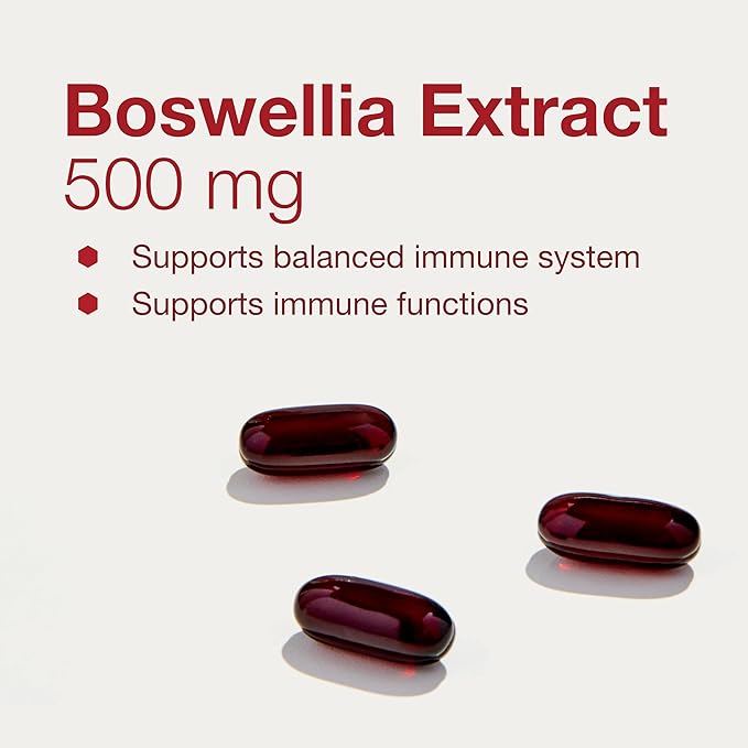 - Boswellia Supplement: Boswellia Extract supplies 500 mg of high-quality boswellia serrata extract per softgel to support a balanced immune system response*