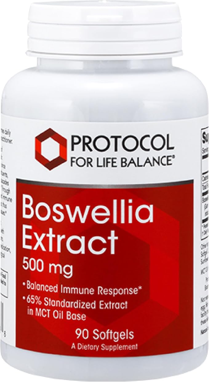 PROTOCOL FOR LIFE BALANCE Boswellia Extract 500 mg - Boswellia Supplement - with MCT Oil Base - Balanced Immune Response - Dairy Free & Soy Free - 90 Softgels
