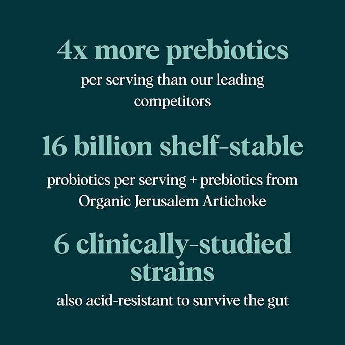 - 16 Billion CFU Per Serving, 6 Probiotic Strains: We use strains selected for their well studied health benefits. Strains include Lactobacillus Acidophilus, Lactobacillus Reuteri, Bifodobacterium Bifidum, Bifidobacterium Breve, Bifidobacterium Lactis, Bifidobacterium Longum.
