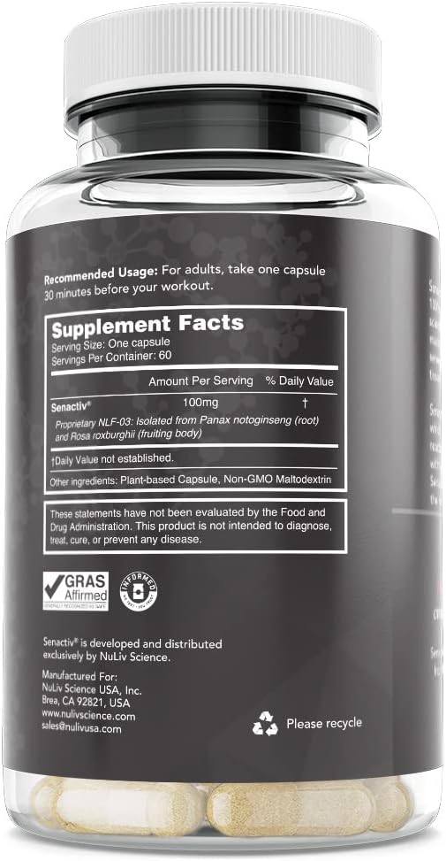 - Muscle Recovery Supplement - Senactiv is a natural sports nutrition ingredient that has been demonstrated in various studies to aid in recovery and enhance endurance. Senactiv has been GRAS affirmed and Informed Ingredient Certified since 2016.