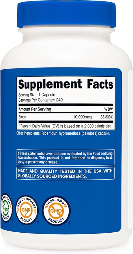 - Biotin (Vitamin B7) - 240 Capsules With 10000 MCG Of High Quality Biotin Per Capsule