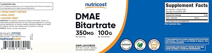 - 350mg of DMAE-Bitartrate Powder Per Serving (286 Servings)