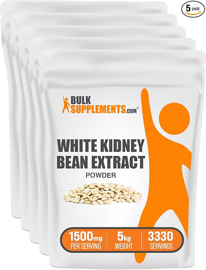 BulkSupplements.com White Kidney Bean Extract - Powdered Extract for Digestive Support, Protein Source - Gluten Free - 1500mg per Serving, Pack of 5 (5 Kilograms - 11 lbs)