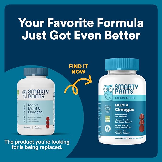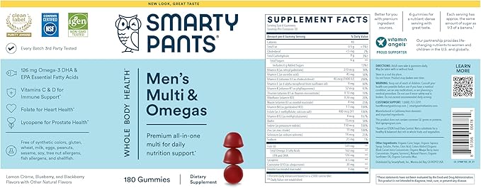 SmartyPants Multivitamin for Men, Gummies: Omega 3 Fish Oil (EPA/DHA), Methylfolate, CoQ10, Vitamin D3, C, Vitamin B12, B6, A, K & Zinc for Immune Support, Biotin, 180 Gummies (30 Day Supply)